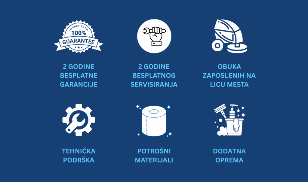 Kada investirate u profesionalnu mašinu za čišćenje podova, sigurnost vaše investicije je podjednako važna kao i performanse samog uređaja. Zato svaka mašina kupljena kod nas dolazi sa dvogodišnjom garancijom koja pokriva sve ključne komponente (motor i sisteme za usisavanje, bateriju, elektronske delove i dr.) Ova garancija ne znači samo popravku u slučaju kvara, već i potpunu podršku u održavanju optimalnog rada mašine tokom celog perioda korišćenja.