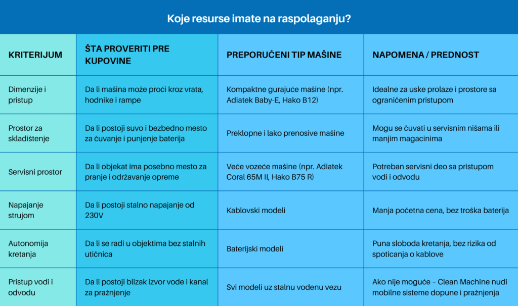 Odabir prave mašine za čišćenje podova ne mora biti komplikovan. Clean Machine nudi besplatnu procenu potreba vaše firme.